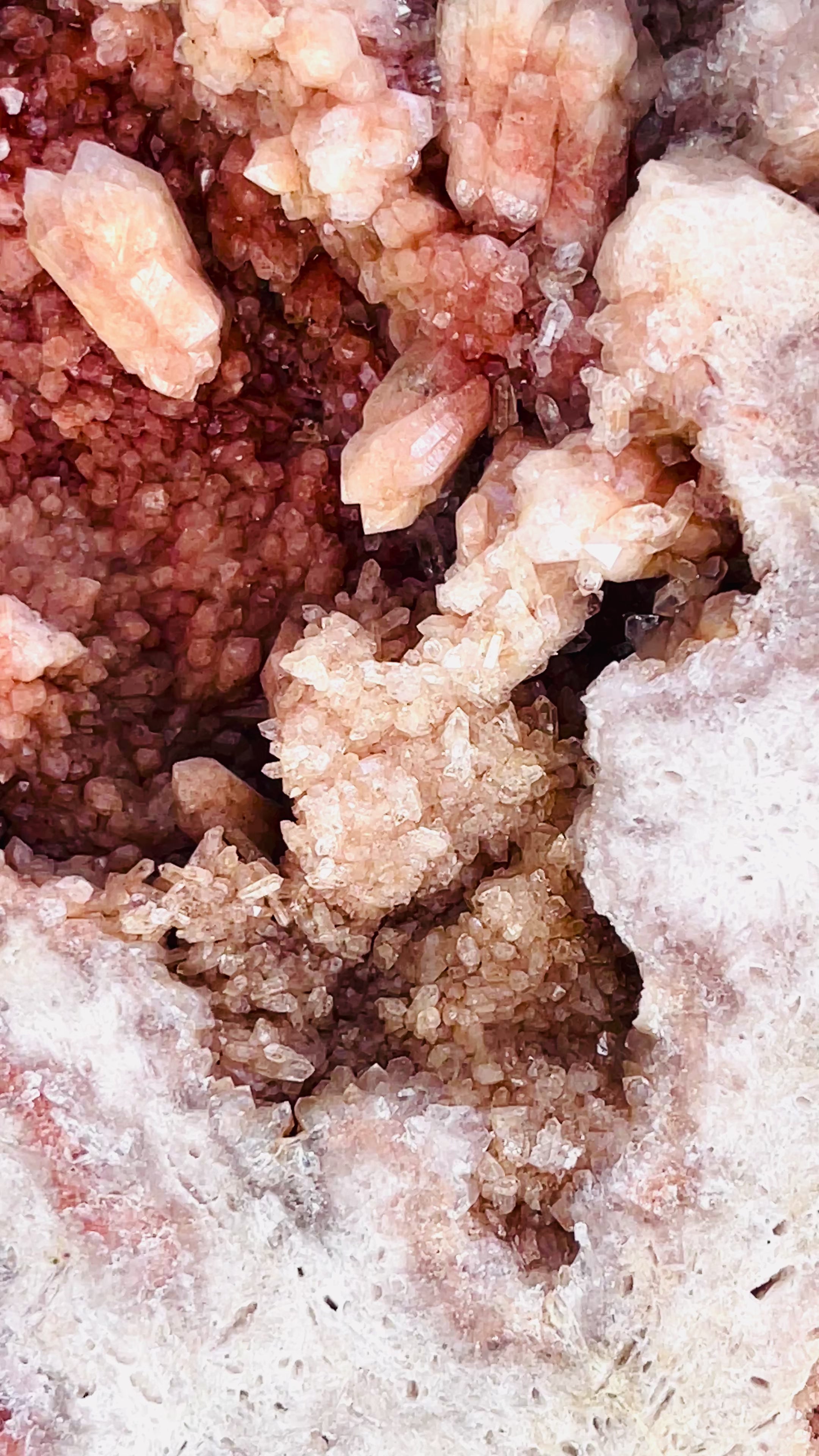 This listing features a distinctive Pink Amethyst slab mounted on a stand, showcasing natural rough druzy formations. Perfect for collectors and as an elegant home décor piece, this ethically sourced crystal from Brazil measures approximately 340x230x60mm and weighs 3.8kg including the stand. Each piece is unique, ensuring you receive the exact specimen you select, adding beauty and positive energy to your space.